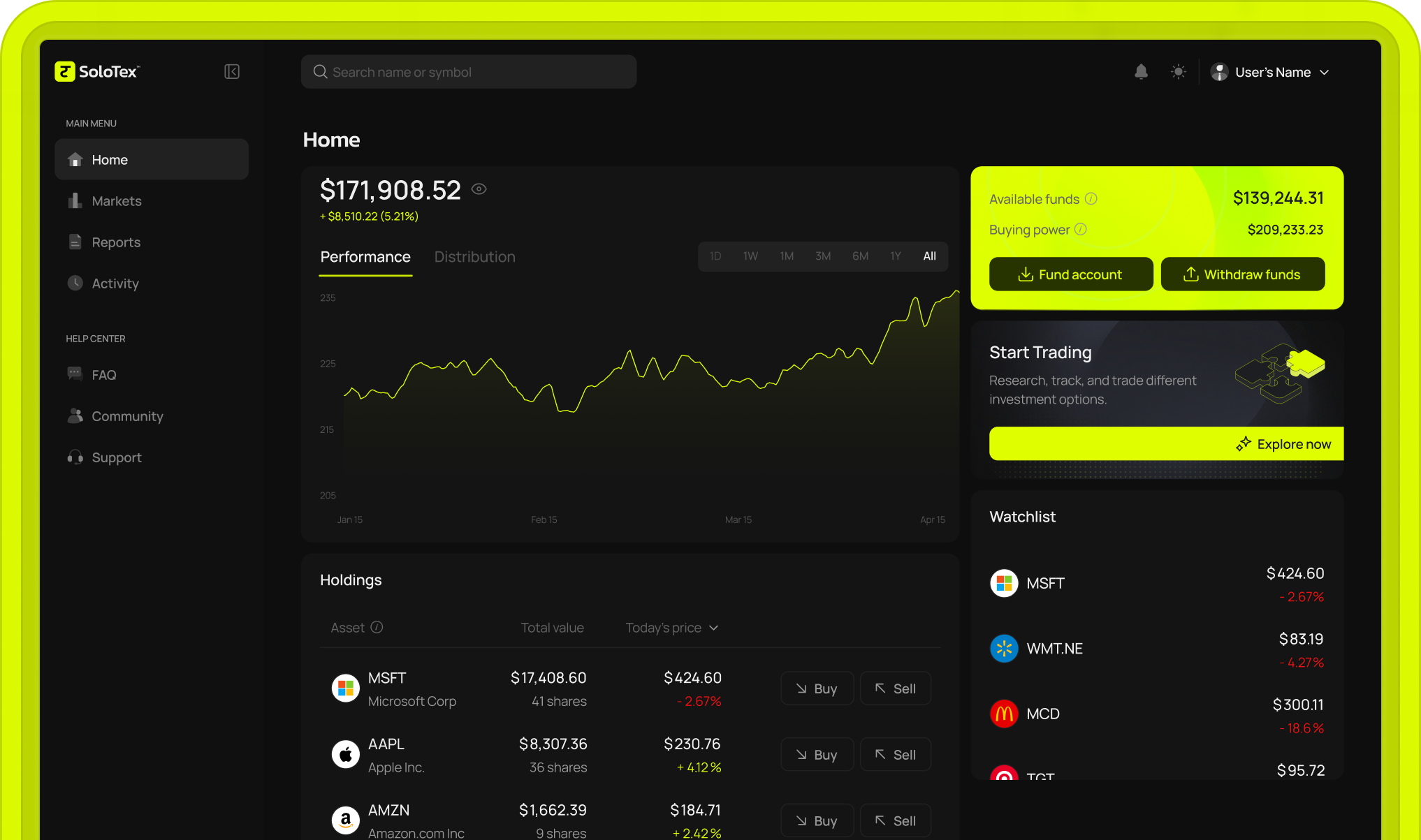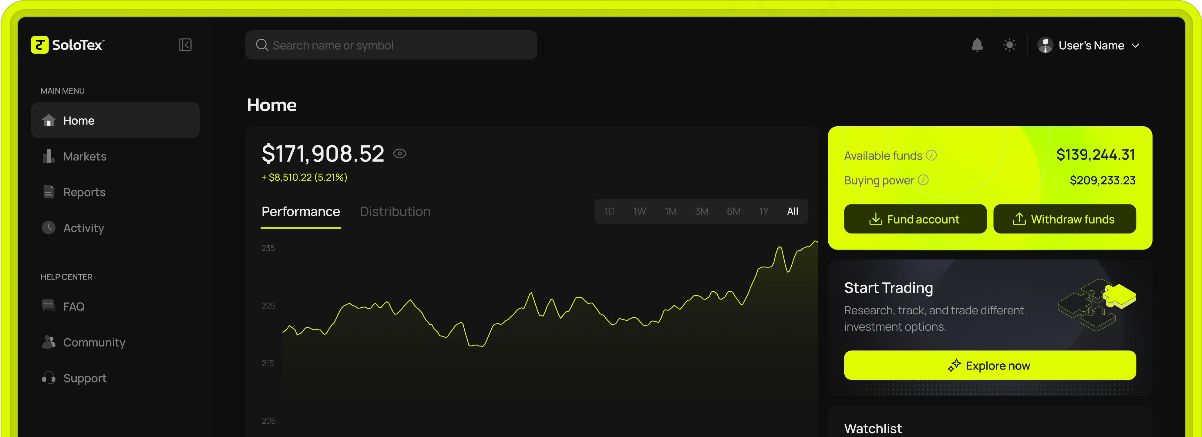 Expand your offerings with US equities, bridging the gap between crypto and traditional markets through a fully regulated environment and a US-based broker-dealer firm.