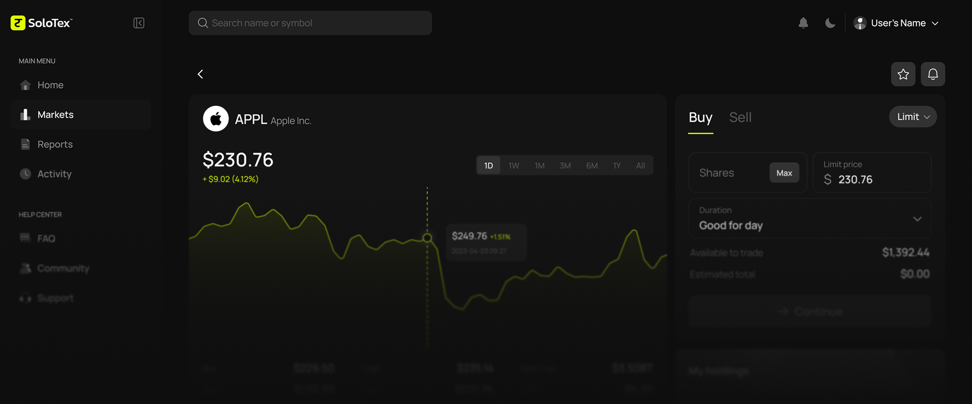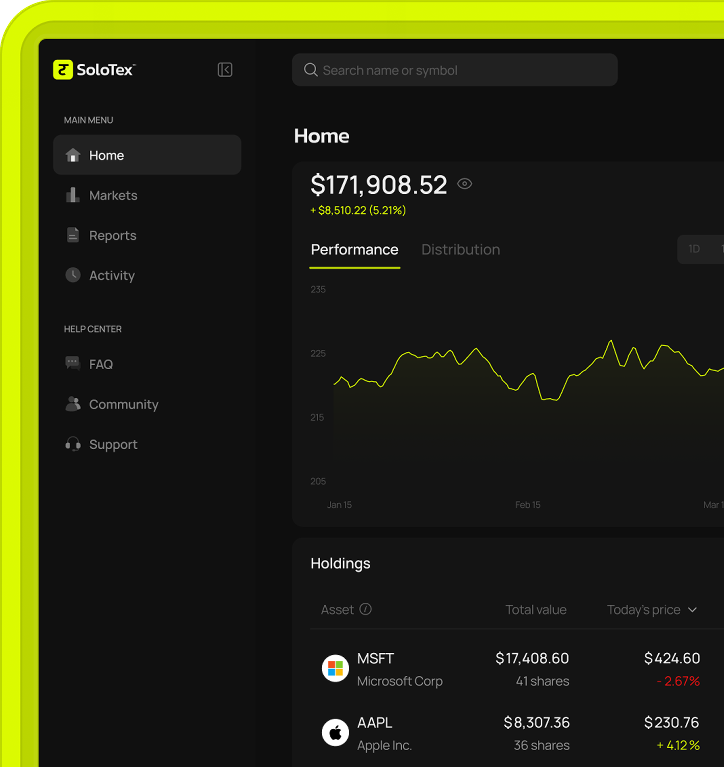 Track all your stock, ETFs, and stablecoin positions all in one wallet with the SoloTex mobile app.